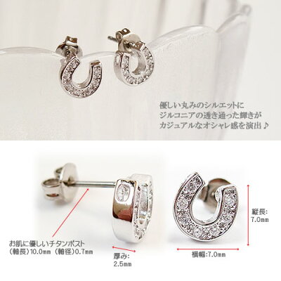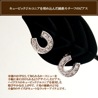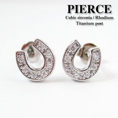 ピアス 馬蹄モチーフ キュービックジルコニア ホースシュー レディース 両耳用 1ペア販売 スタッドピアス チタンポスト ストレートポスト セカンドピアス 真鍮 ロジウム ジルコニア ラウンドカット クリア オールシーズン 【RCP】